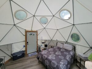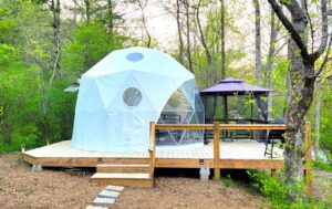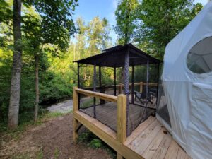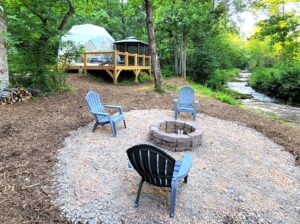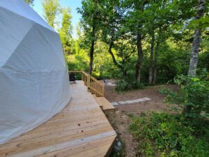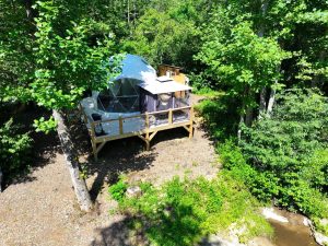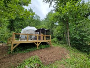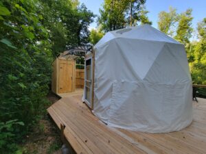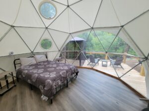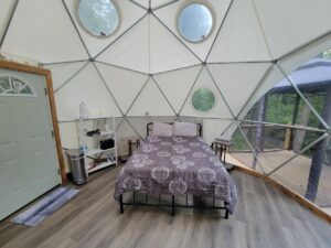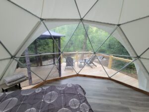 The Geodome at the creek is a unique and charming way to experience the outdoors. The Geodome glamping site combines the best of both worlds: the great outdoors and many of the comforts of home. This unique outdoor living space, helps you to unwind and unplug from a busy life.