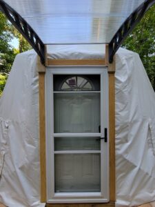 - For air circulation, you have two 10 foot screen windows on both sides of dome, along with a screen door and a small fan that blows over the bed