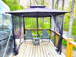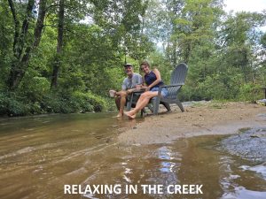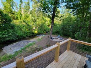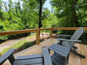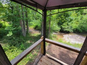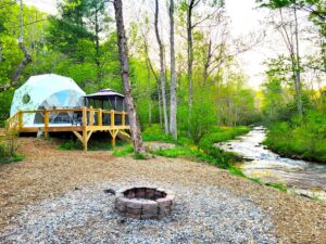 My husband and I had a wonderful trip to the new A-frame cabin last week. The location is very private and serene. We lounged in the river, made several fabulous meals, had two wonderful fires and listened to the thunderstorms roll through with the A-frame panel open and breeze blowing into the cabin. We spent the day in Boone eating lunch as it’s a short drive up the hill. This was a 10 out of 10 for us and what we were looking to experience this week and have already booked the GeoDome for our next visit.