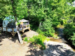 We stayed at the A-Frame and the Geodome with Paul’s locations. Both were beautiful next to the creek! Caught a few baby trout, nice area to walk in, and a very relaxing scene!