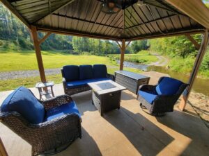 4 guests – 2 BR’s – 2 King beds – Luxury Bath – Gazebo – Hot tub – Fire Pit